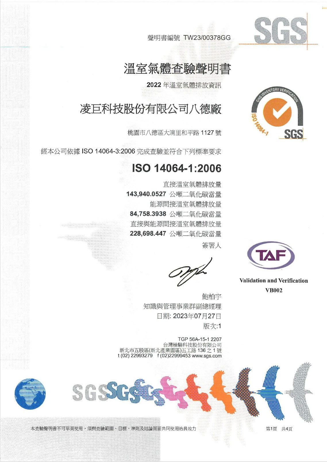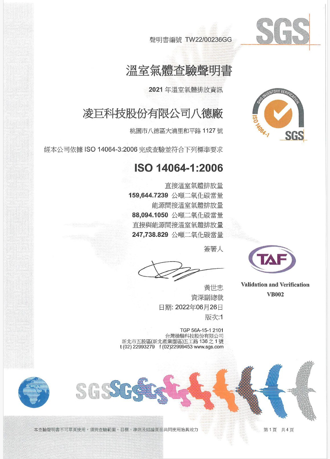 2022年度溫室氣體查證聲明書